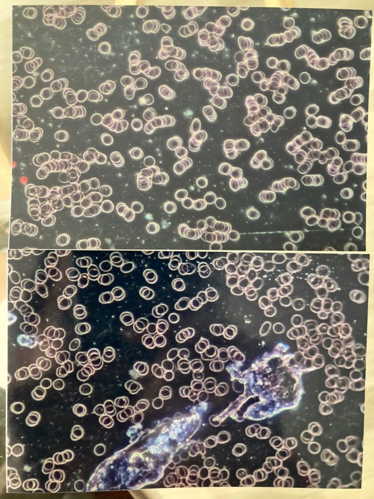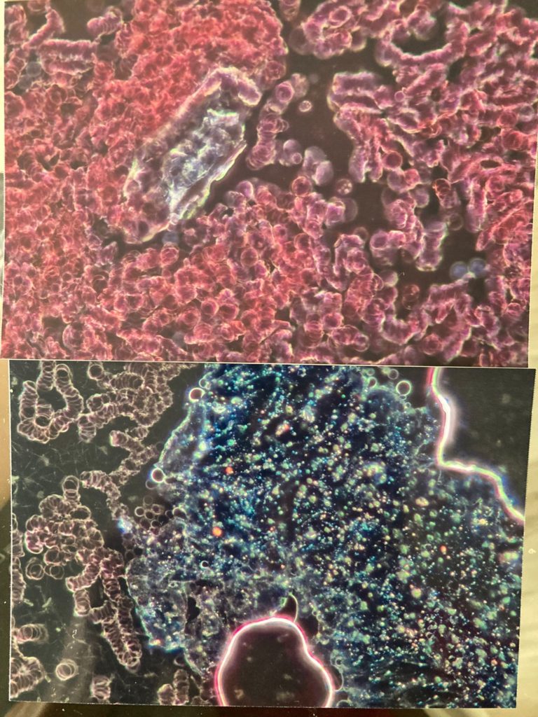 Grazie all’analisi osservazionale del sangue vivo in campo oscuro, ha constatato delle modificazioni degli elementi del sangue, in particolare a livello dei globuli rossi, che nel campione apparivano inizialmente impilati e con scarsa cinesi.
