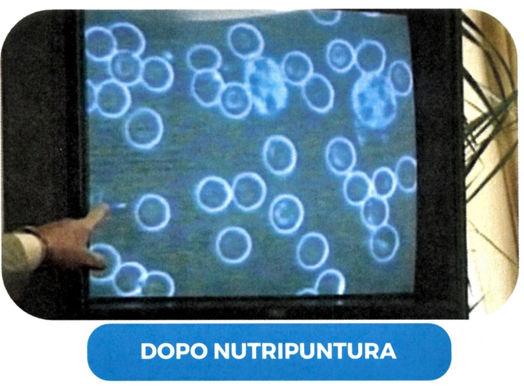 A seguito dell’assunzione di specifiche sequenze di complessi poliminerali (NUTRI), attraverso un secondo prelievo, i globuli rossi apparivano invece con buona cinesi e distanziati.